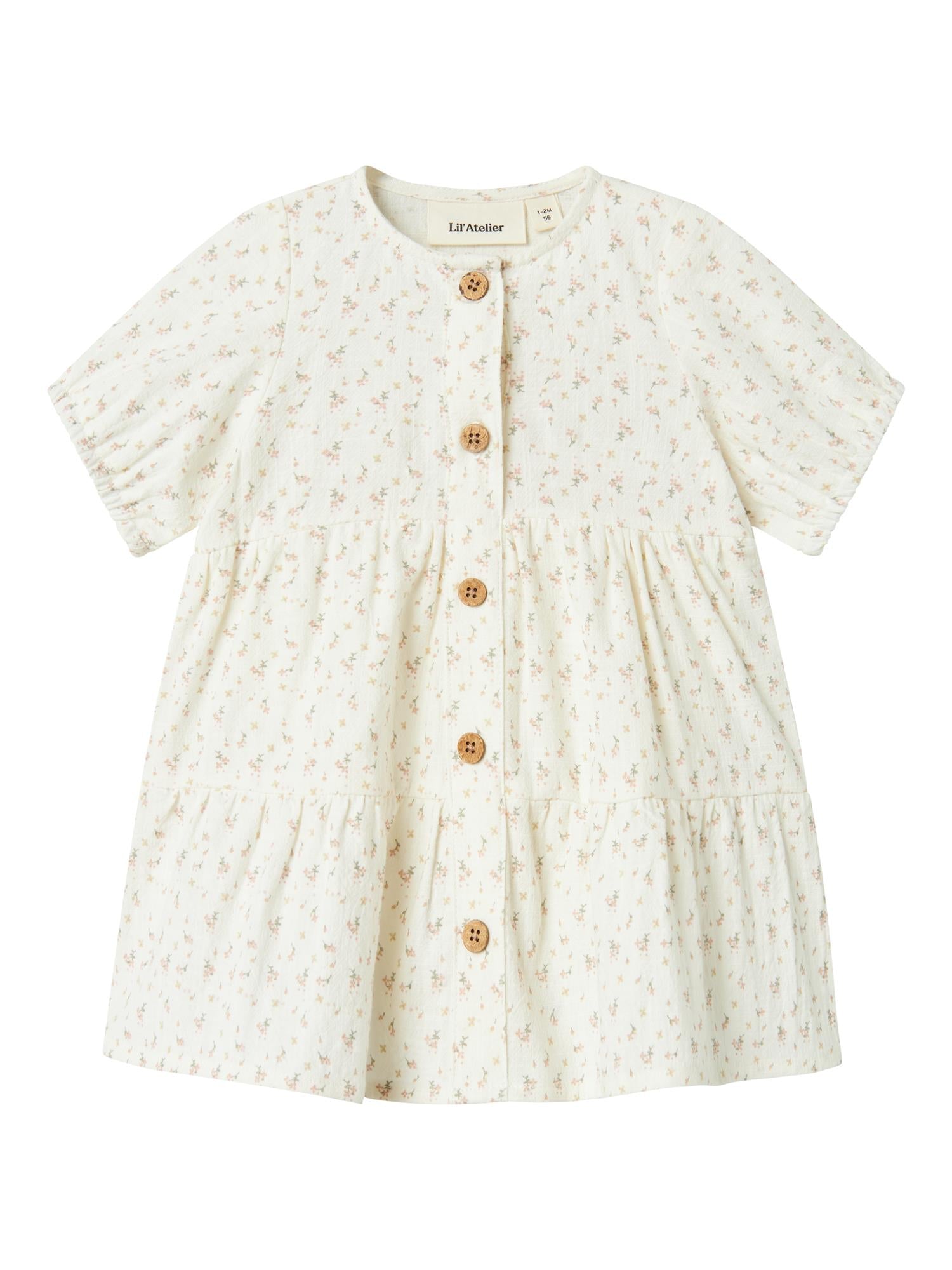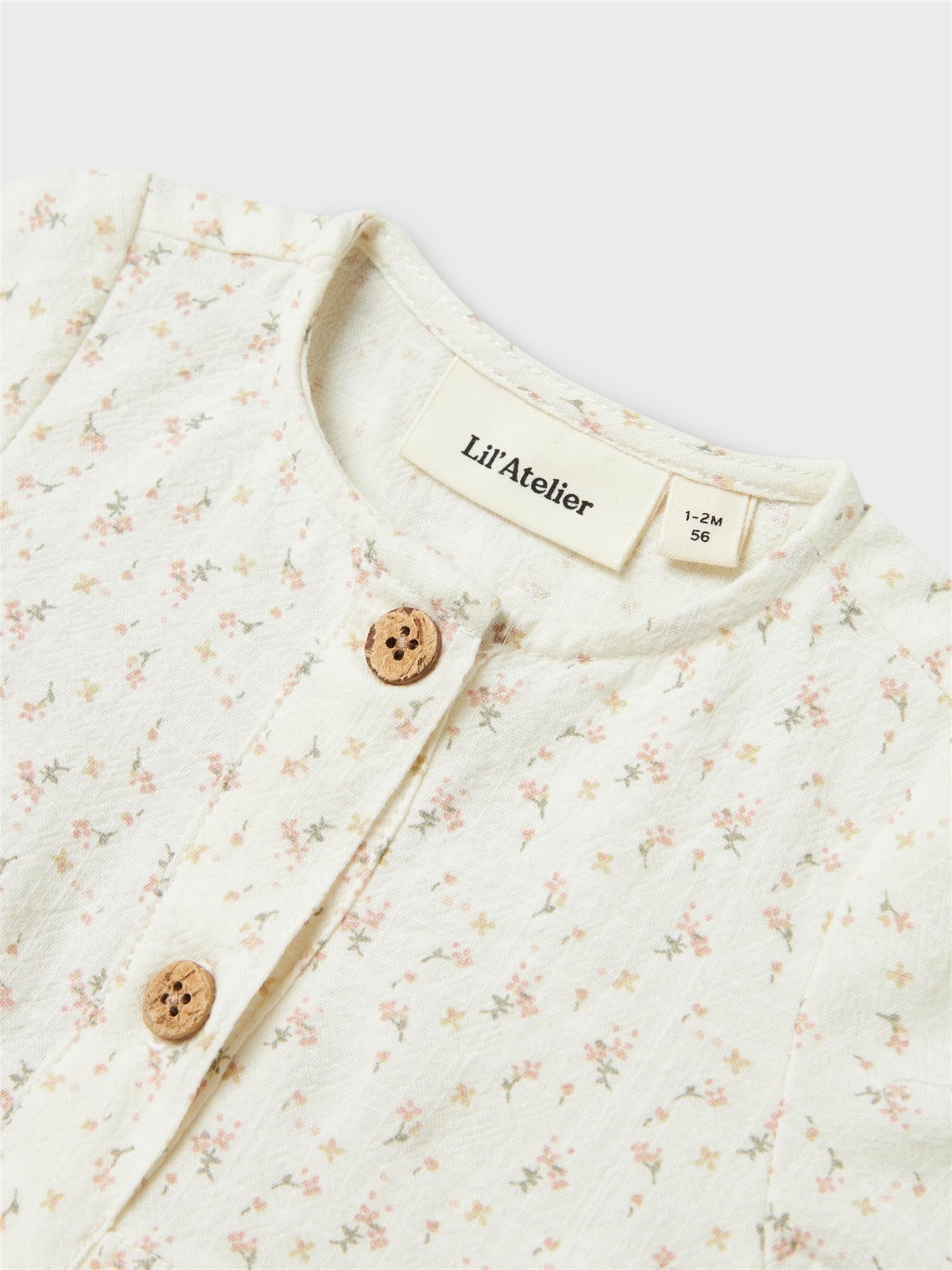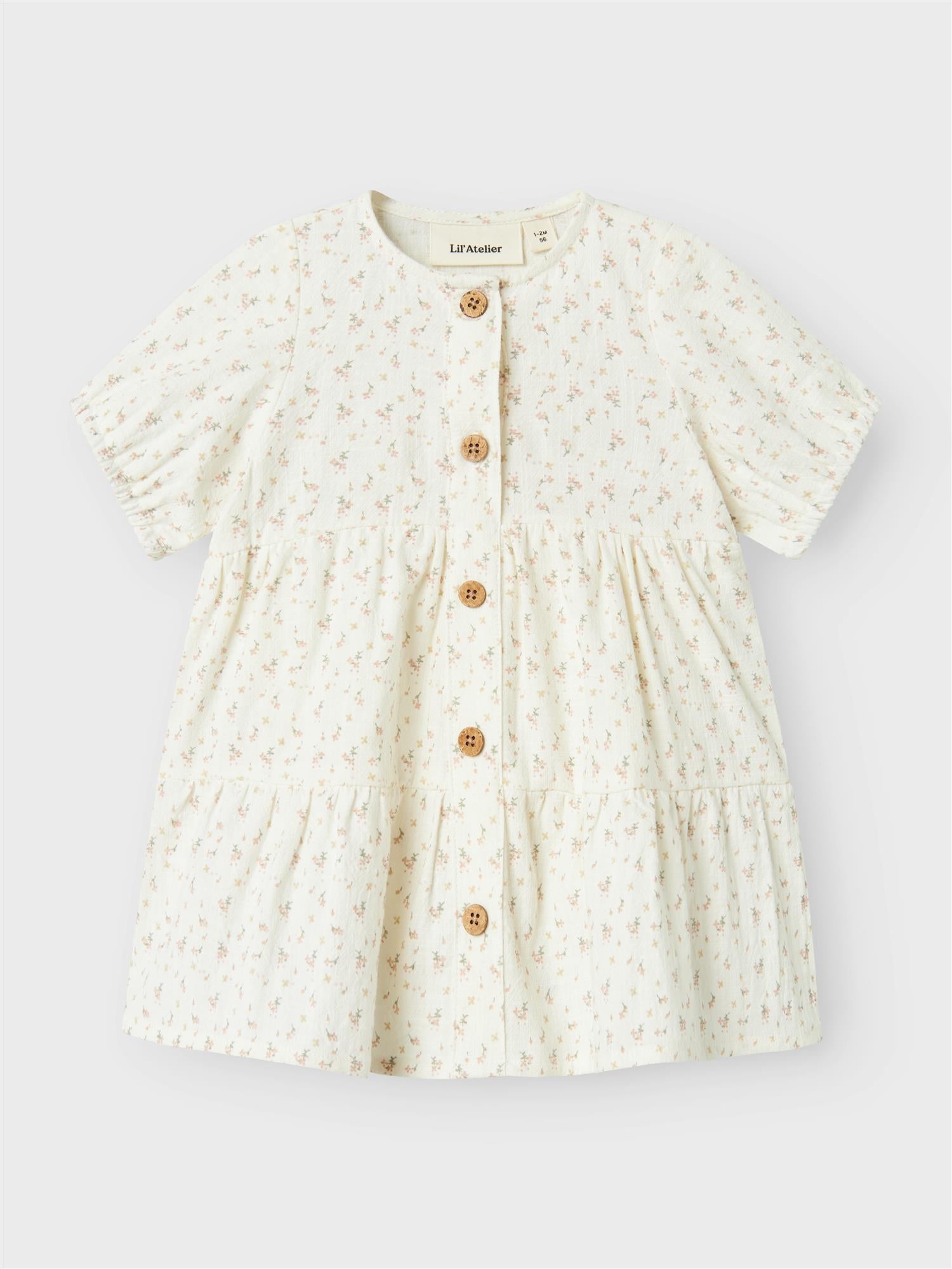 Super søt kjole fra Lil Atelier med nydelige detaljer på brystet og rysjer på skuldrene