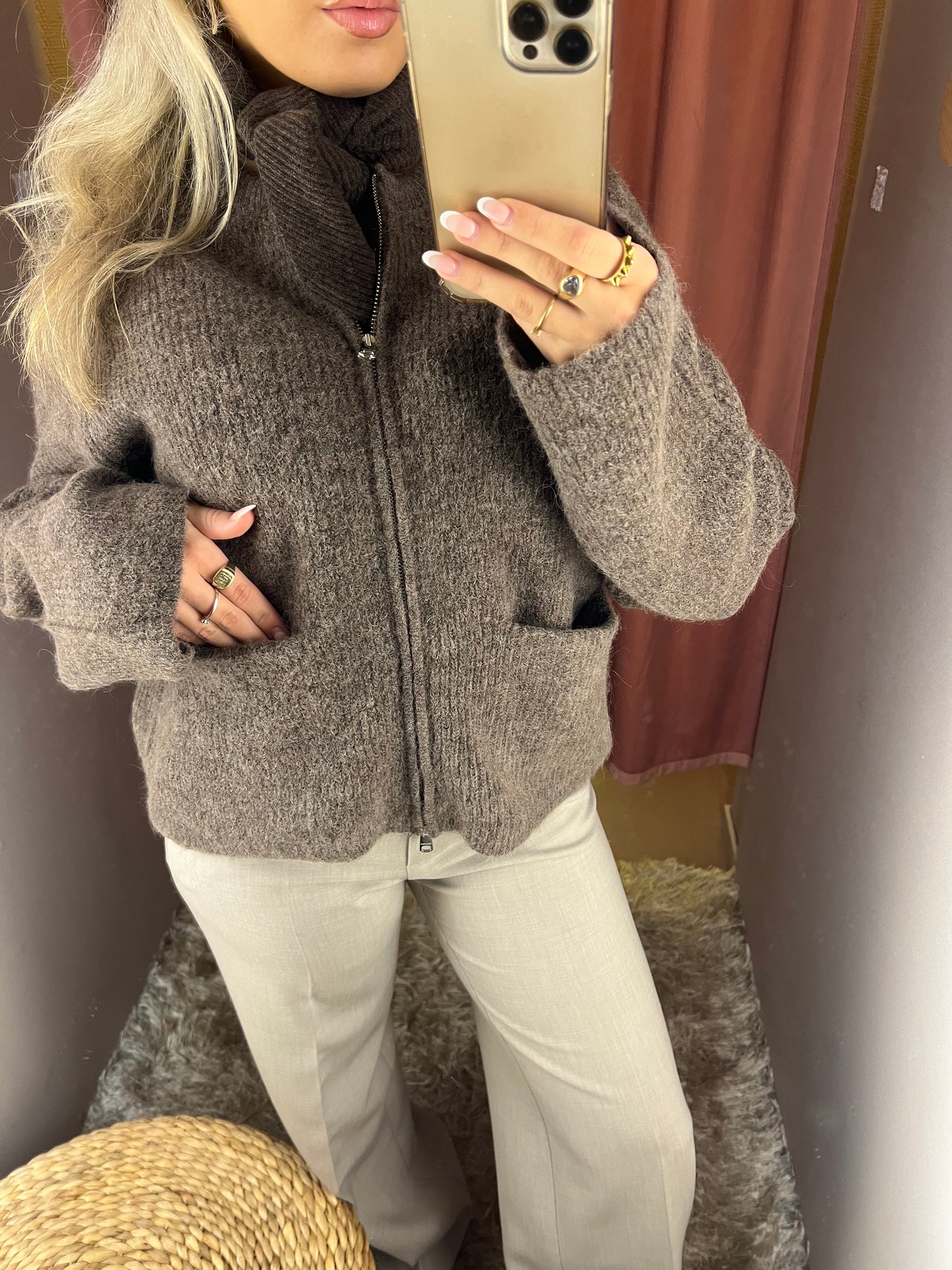 Selected SIA RAS ZIPPER CARDIGAN CHOCOLATE CHIP