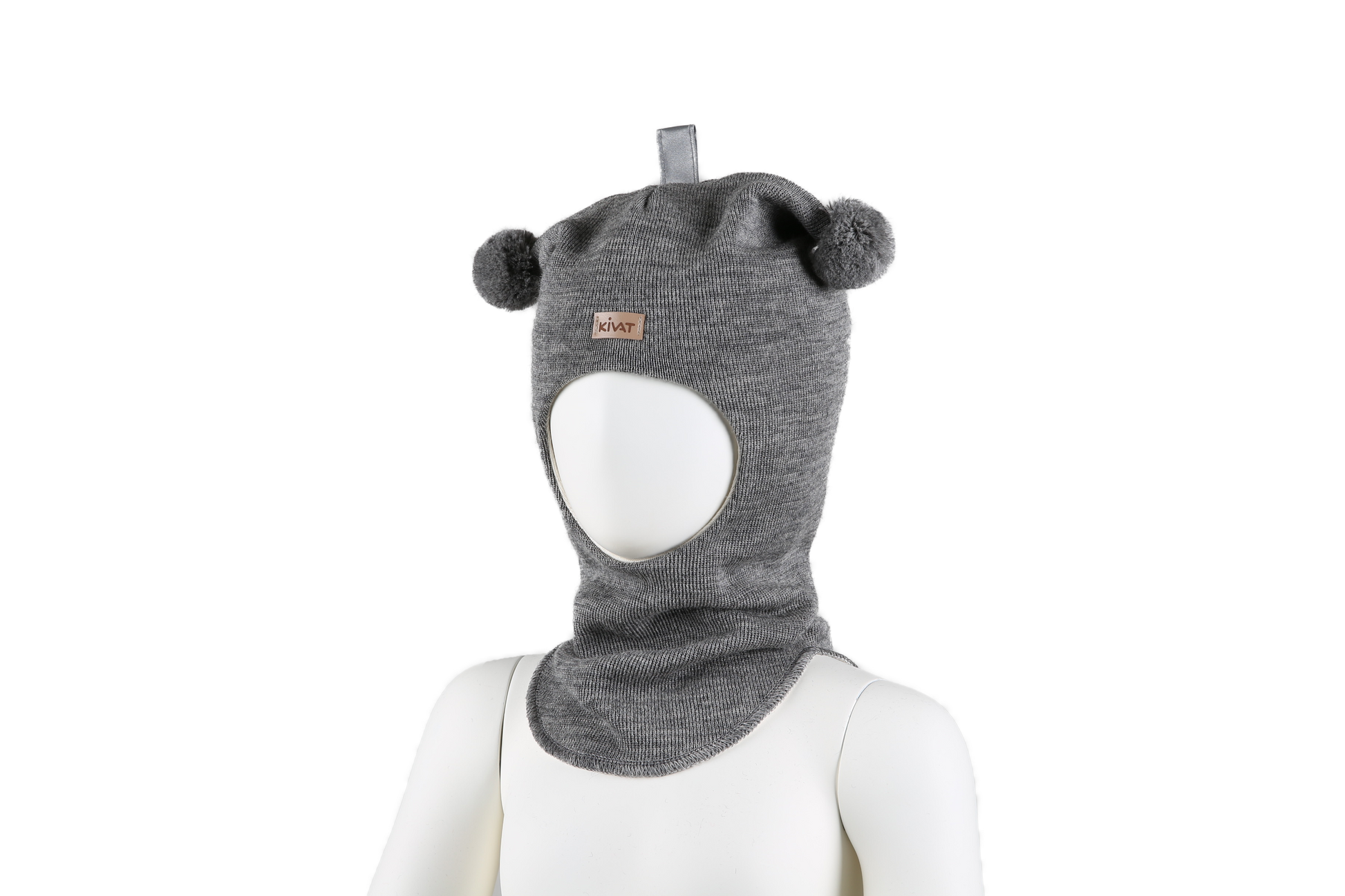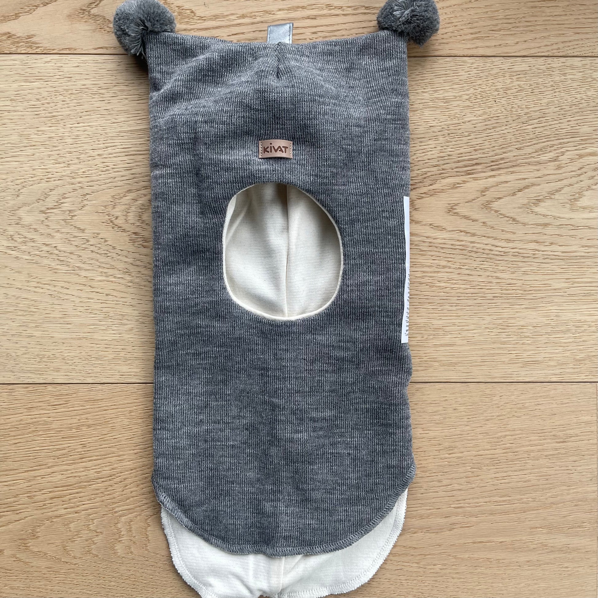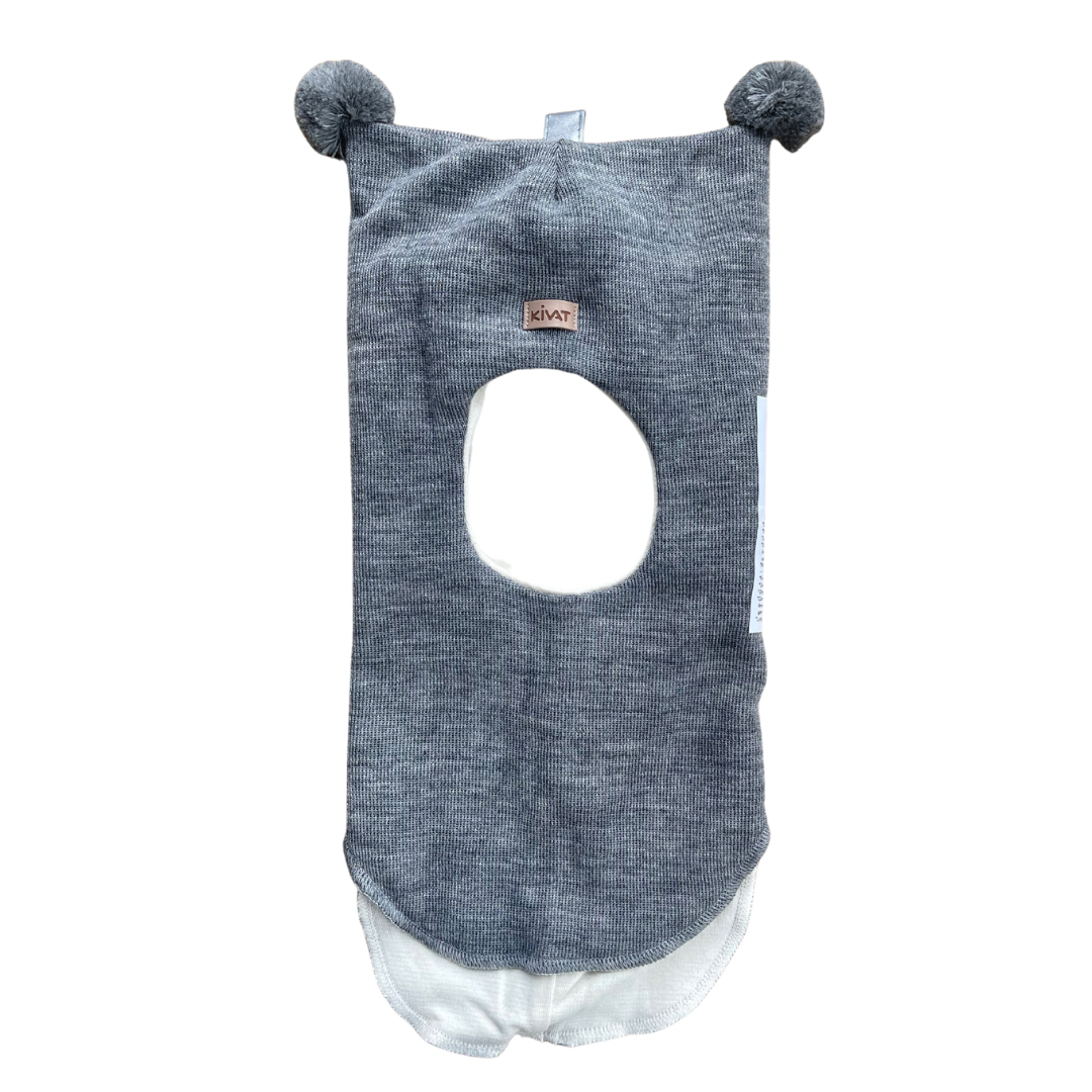 Kivat Balaclava Lue Ull lysgrå melert dusk og skinnlapp