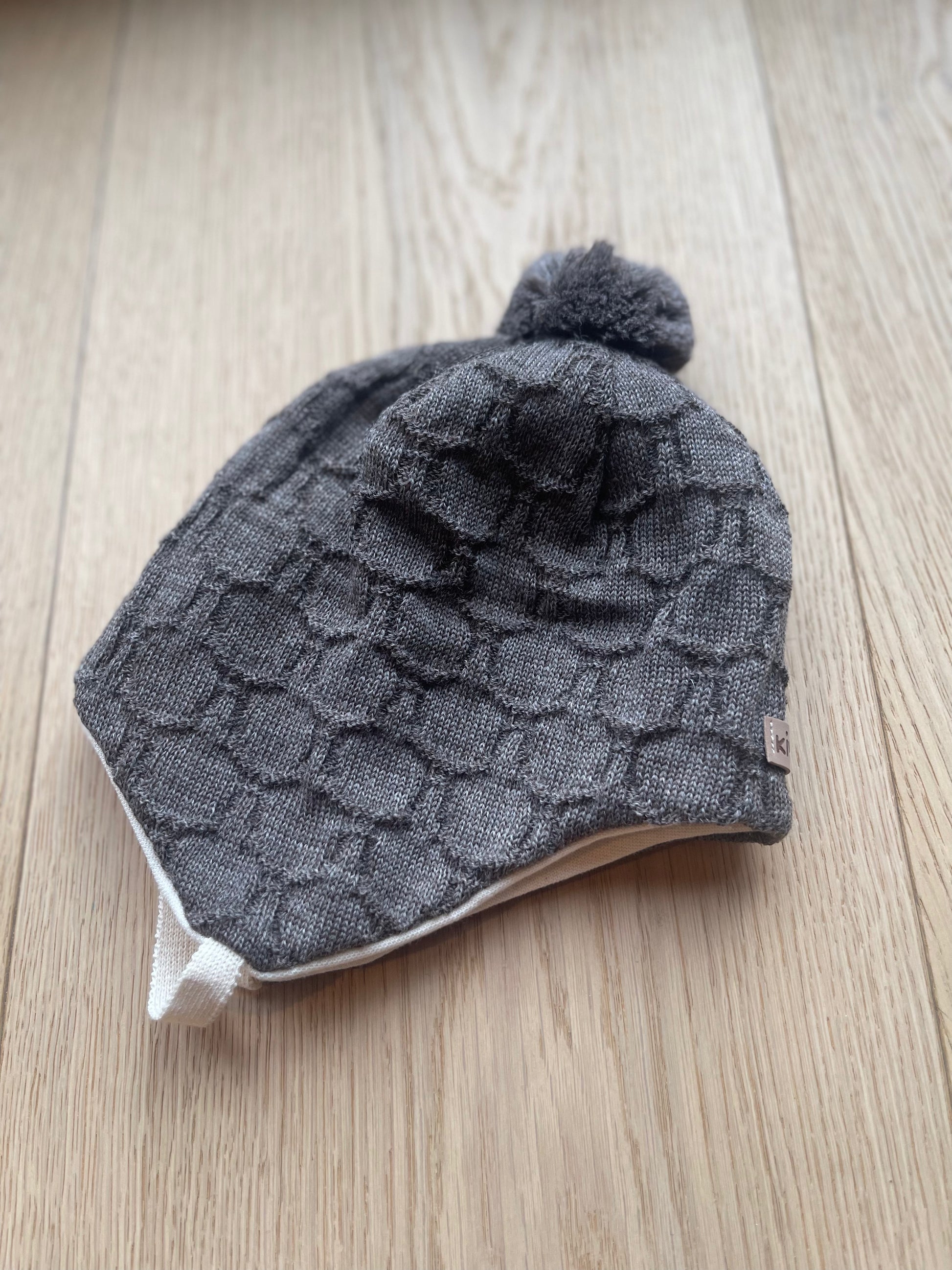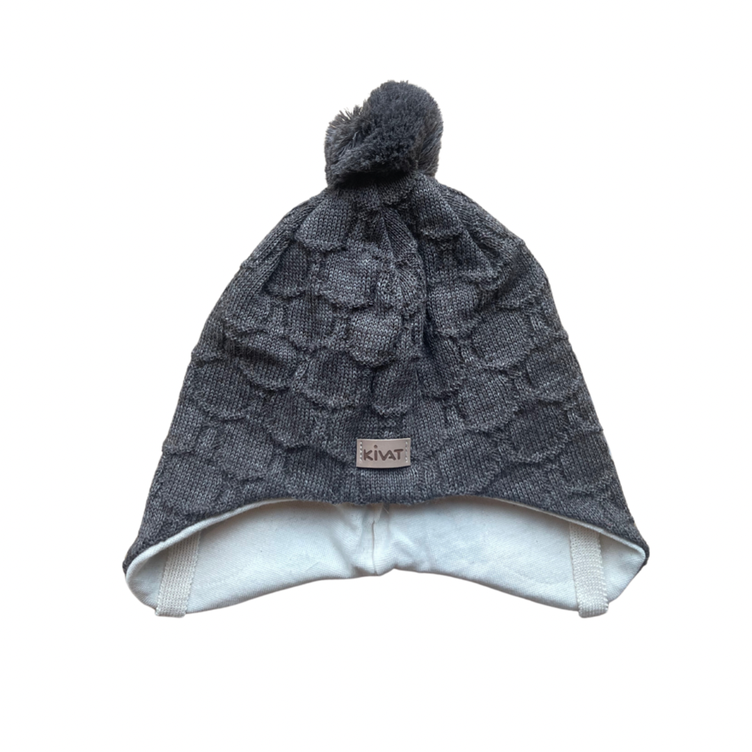 Super søt knytelue i ull fra Kivat med dusk på toppen og vindstoppere