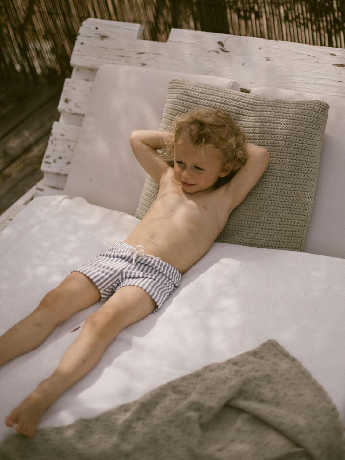 Super fin badeshorts fra Lil Atelier med knyting og justering i livet.
