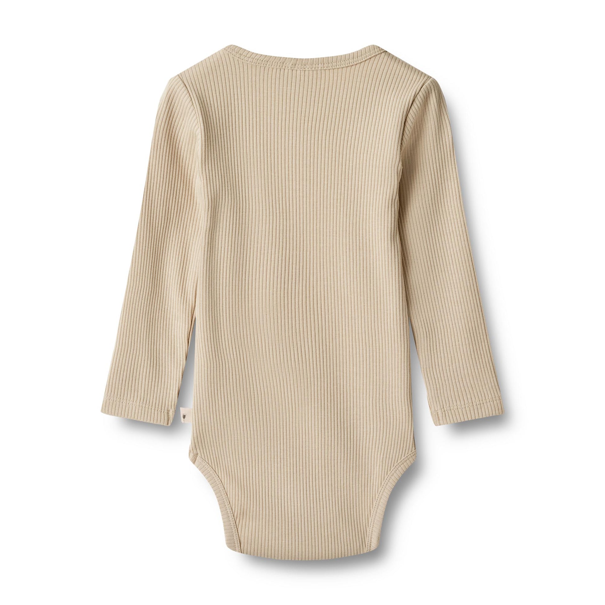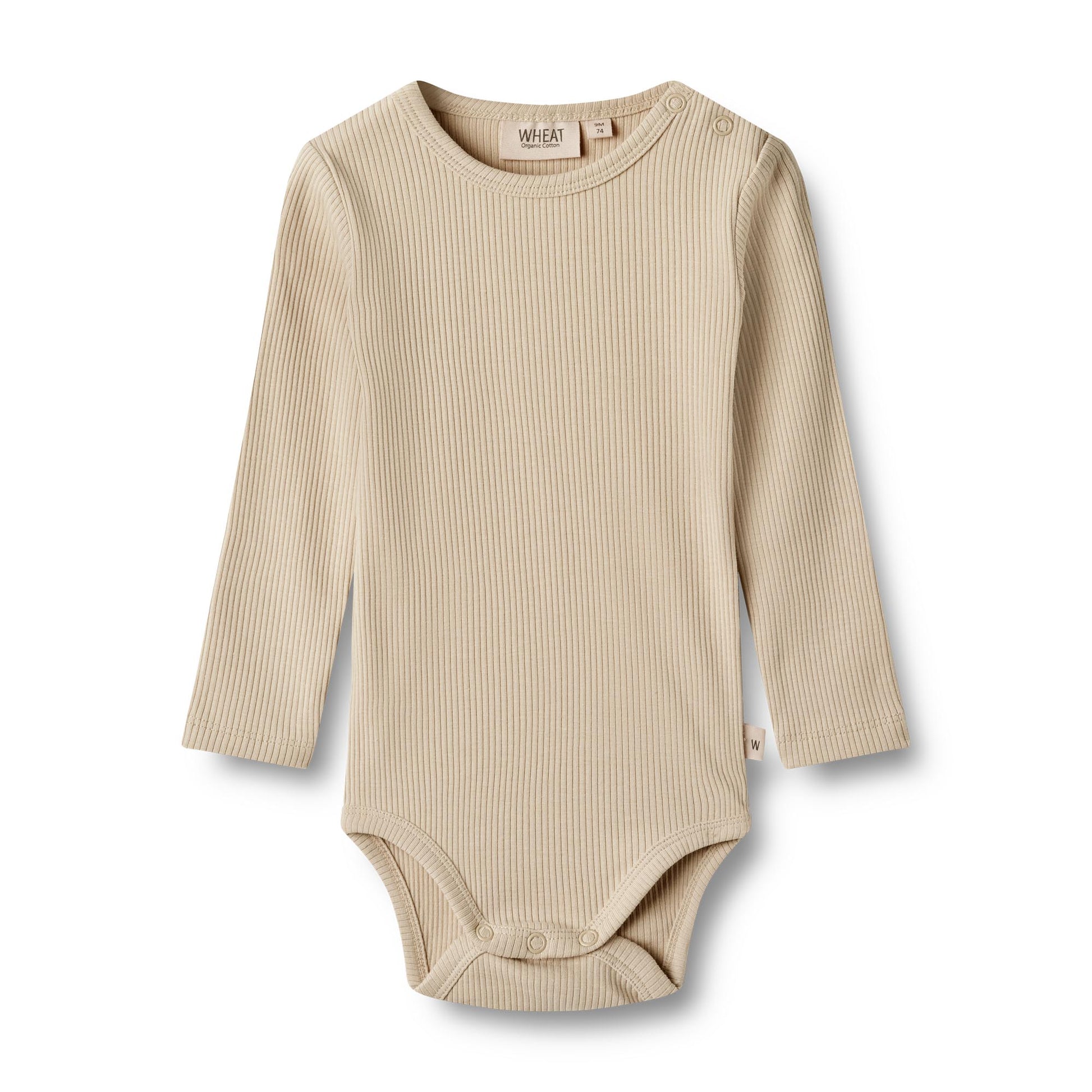 Søt langermet ribbestrikket body i myk økologisk bomull for babyer.